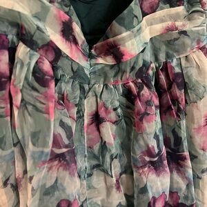 NWOT Romance that Wows Dark Teal Floral Print Organza Maxi Dress