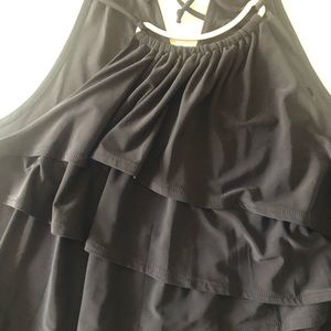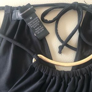 Never worn Women’s dressy pant romper with ruffle top & gold accent; elastic waist