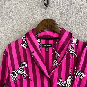 NWOT Room Service Women's M Zebra Print Pink Striped Pajama Set