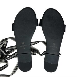 • Long ankle straps in a black and sand striped pattern can be tied however you like.