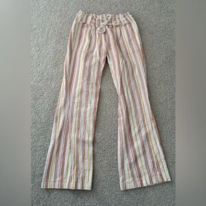 NWOT Roxy Oceanside Beach Linen Blend Pants with rope tie in multi stripe