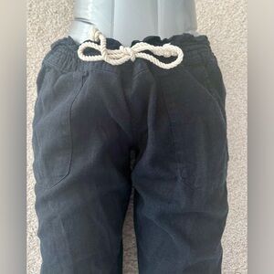 NWOT Roxy Oceanside Beach Linen Blend Pants with rope tie in true black