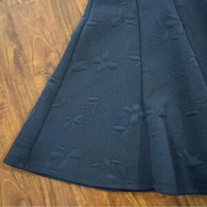 This beautiful NWOT Roz & Ali A-line swing style lined dress in size 2 Petite is a must-have for any wardrobe. The dress features a solid textured pattern with a round neckline and sleeveless design, perfect for a summer, fall, or spring occasion. The knee-length dress has a zip closure and is made of a knit fabric with accents of mesh around the neckline. It has stretch, making it comfortable to wear. Hand wash only and made of polyester and spandex, this dress is perfect for transitioning from a classic career look to an evening out. Great condition, never worn Chest width 16” Length 33”