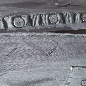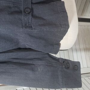 NWOT Ruff Hewn Women Jacket Distressed Black Cute. Semi fitted, partially lined. Lots of details: slanted buttonholes, rivets on pocket seams, ribbon-like detail on button plackets down front and inside cuff & on front pockets. Belted back & shoulder tabs. Front oversize patch pockets. Perfect with any casual outfit, lightweight for outerwear in between seasons or to finish off an outfit. Fabric shows distressed finish that Ruff Hewn is known for. I've usually found this brand runs a little on the smaller side.