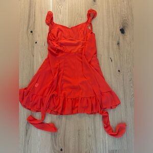 NWOT, never worn. This stunning red dress features a sleeveless design with delicate ruffle details, a sweetheart neckline, and an adjustable sash. Wear with heels for a sultry date night look, or pair with a cute cropped sweater and ballet flats for a sweet Y2K inspired vibe. Versatile, flattering and so fun, this dress is the perfect addition to any wardrobe. Size M/US 6. True to size.