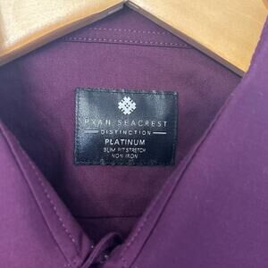 Ryan Seacrest Distinction Platinum Slim Stretch Non Iron Dress Shirt Purple Size 15 32/33