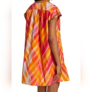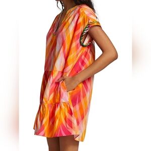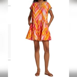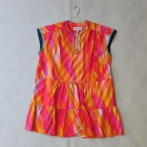 Embrace the vibrant hues of pink and orange with this SALONI swim coverup, perfect for a day at the beach or poolside lounging. The lightweight fabric and flowy silhouette ensure comfort and style, while the sleeveless design and split neckline add a touch of elegance to your swimwear ensemble.