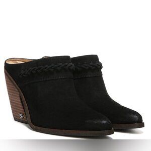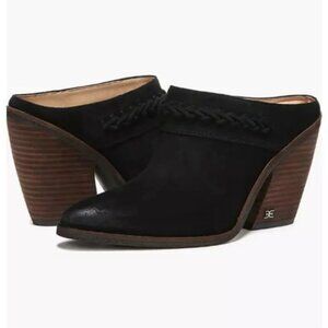 NWOT SAM EDELMAN NEW YORK ALISON SUEDE LEATHER Western Black Mule Heel Size 10M