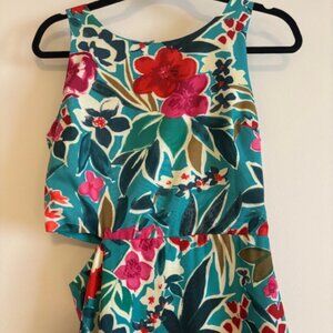 NWOT SAM EDELMAN Tropical Ruffle Cutout Midi Dress In Aqua Multi size 6
