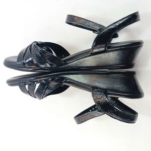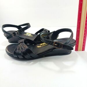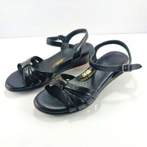 NWOT SAS Strippy Quarter Strap Wedge Black Sandals Womans 6