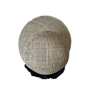 Cute woven grass like fabric, Moisture Wicking Sweatband, One size, but stretchy fit, Adorable black bow in back. Never worn, bow was glued on & is partially unglued in one corner - easy fix if you desire. Still looks great and works fine.