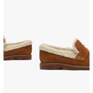Showcasing shearling lining around the topline and a round toe, these easy-to-slip-on loafers are perfect for sprucing up your at-home ensemble.