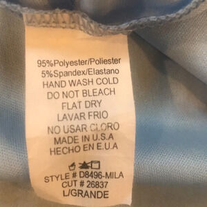 Beautiful V neck, spaghetti strap halter back, side slits and tie on side. Elastic in waist but no stretch in fabric of dress.