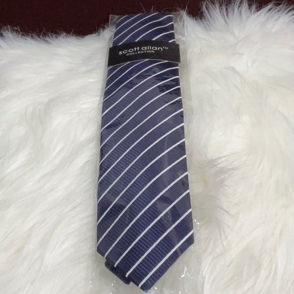 NWOT SCOTT ALLAN COLLECTION MENS TIE. BLUE AND WHITE STRIPED TIE.