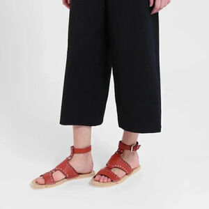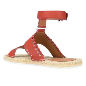 NWOT SEE BY CHLOÉ Yuna Rust Red Orange Espadrille Ankle Leather Sandals Size 8