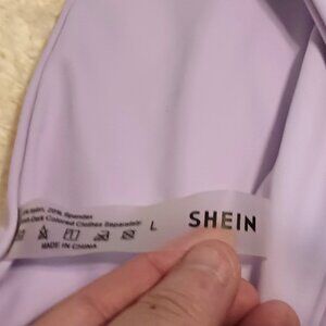 This light purple colored SHEIN 2 piece bikini set with an underwire halter triangle bra & hipster bottoms is new without tags, but it is in EXCELLENT CONDITION with no stains, no holes nor defects of any kind.