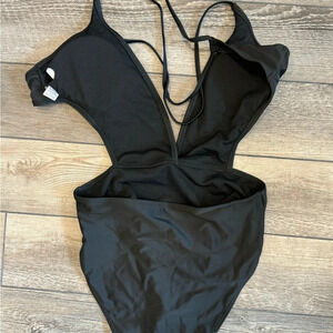 NWOT SHEIN Black Deep V Neck Backless Halter One Piece Sz M
