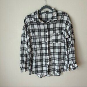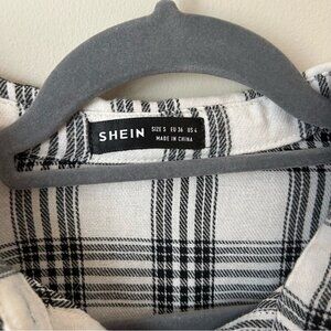 NWOT SHEIN Black White Plaid Flannel Button Down Shirt Women’s Size Small