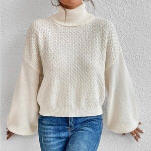 NWOT SHEIN Cream Off White Turtleneck Sweater Open Back Women’s Size Small