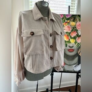 NWOT SHEIN FRENCHY FLAP POCKET, CROP CORDUROY JACKET SZ L. Trendy, neutral tone