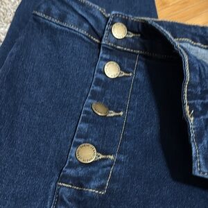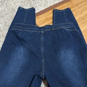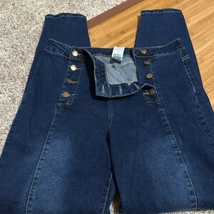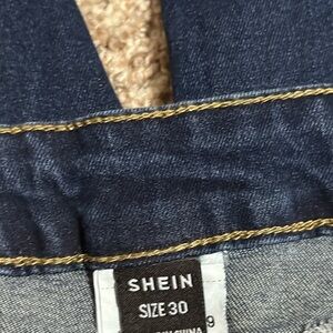 Crafted from rich indigo blue denim, these high-rise jeans from SHEIN offer a timeless look with their full-length, slim-cut legs. The solid color, button detail and traditional twill weave make them a versatile addition to any wardrobe.