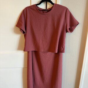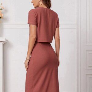 NWOT SHEIN LUNE Solid Tee & Straight Skirt size L in Red Rose