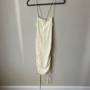 NWOT SHEIN Pale Yellow Cream Asymmetrical Ruched Bodycon Mini Dress Size Small