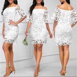NWOT Womens Sexy Off Shoulder Short Sleeve Dress Summer Lace Hollow Out Dresses Party