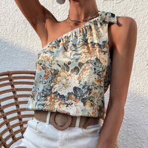 NWOT SHEIN VCAY Floral Print Tie One Shoulder Blouse