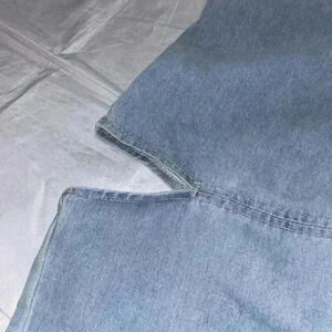 Description: front button closure with zipper and button back elastic waistband front and back pockets also has rips on the side of each pant leg ( See Picture) wide leg