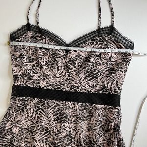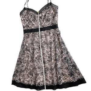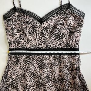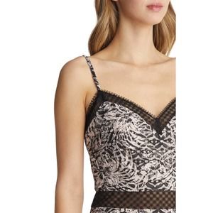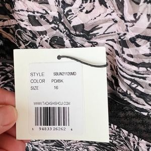 NWOT SHO by Tadashi Shoji Botanical Print Lace Inset Midi Dress in Black