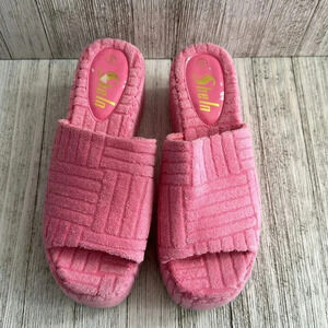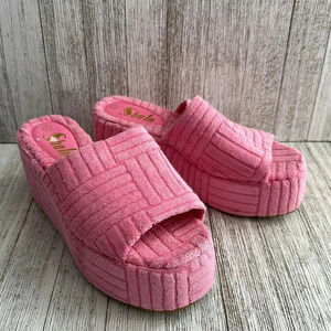 NWOT SHUZIA Curve Toe Padded Single Band Wedge Slide Sandals