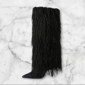 NWOT- SHUZIA SZ6 Winter Black Fur Knee-High Stiletto Boots