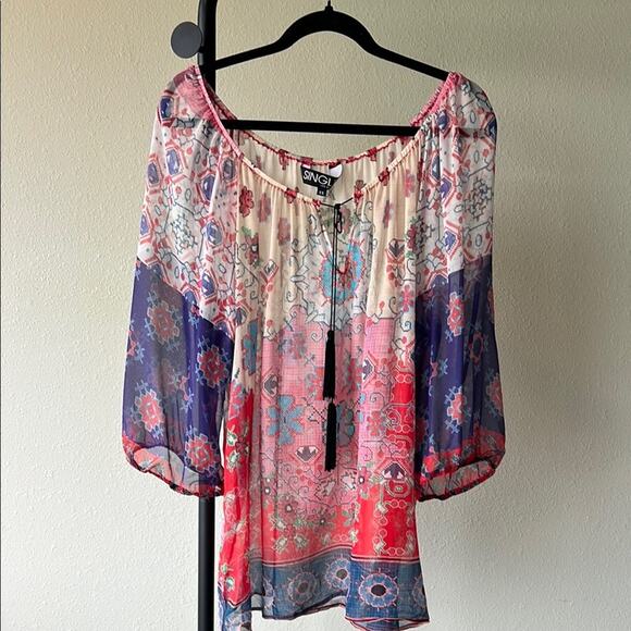 NWOT SINGLE Los Angeles 100% Silk Women's Bohemian Top - size 1X