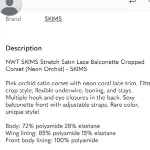 New no tags ,SKIMS STRETCH SATIN LACE CROPPED CORSET