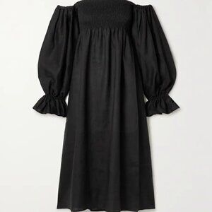 NWOT SLEEPER | Atlanta Off The Shoulder Shirred Linen Dress Black - NEVER WORN