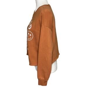 NWOT SMILEY WORLD Spread Kindness Burnt Orange Smiley Face Cropped Sweatshirt Size Small