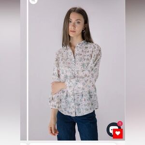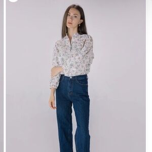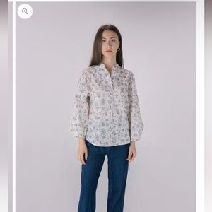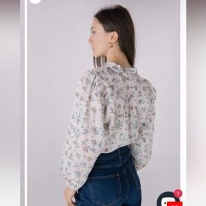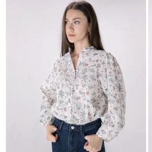 NWOT SOLITAIRE Floral Printed Embroidered Eyelet Long Sleeve Top Sz M