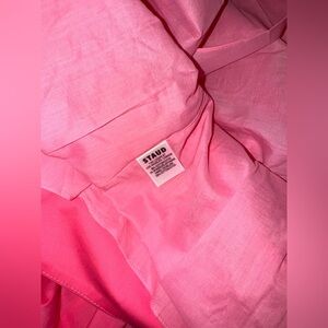 NWOT STAUD Landry Shoulder-Tie Smocked Cotton Maxi Pink Dress sz XL