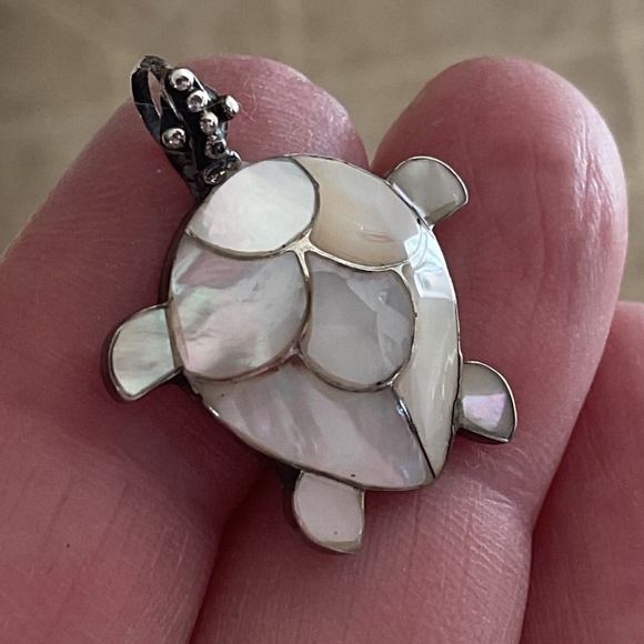 NWOT STERLING SILVER 925 Mother Of Pearl Inlay Turtle Pendant