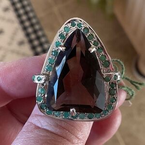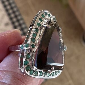 NWOT STERLING SILVER 925 Smoky Topaz/Emerald Ring Size US 7.5