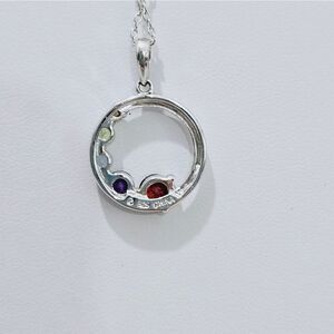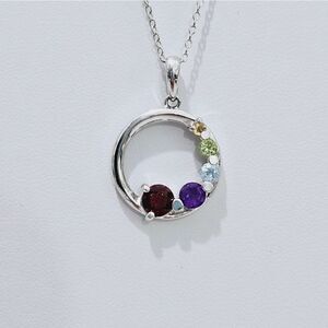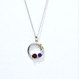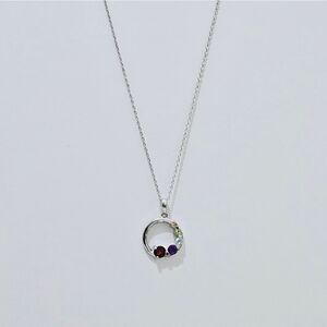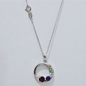 NWOT, Sterling Silver and natural gemstones make up this petite infinity circle pendant with chain.