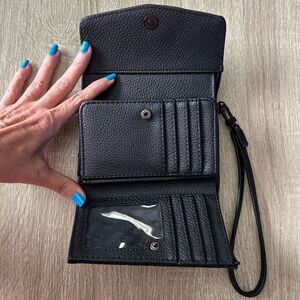 Chic black STEVE MADDEN wristlet / wallet with embossed design. Includes a handy strap