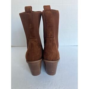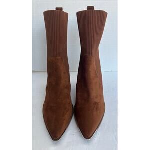 NWOT STEVEN NY Reeve Brown Suede Mid Calf Block Heel Pull On Sock Boots Sz 9.5M