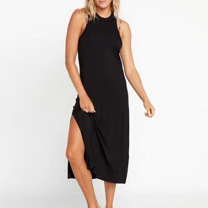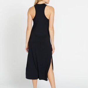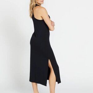 Slimming, sexy, and silky smooth, this little black dress is perfect for any occassion. Featuring a thigh high side slit, a racer back, and a body skimming design, this dress will hug your curves in all the right places.