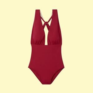 This stylish one-piece swimsuit features a plunge neck design complemented by secure criss-cross back straps, ensuring ease of wear while enjoying waves. Crafted from luxurious, Italian-made fabric, it offers a comfortable slip-on fit with no hardware or ties, making it perfect for a day at the beach. Ideal for various body types, especially those requiring extra support, this suit balances fashion with function seamlessly. From the brand: Our take on this classic one-piece style comes with all the bells and whistles. (Woot woot.) Where most plunge-neck suits offer a pesky halter, ours is built with criss cross back straps that can’t come undone, so you can splash around in the waves without worry. Easy slip-on fit, no hardware or ties Twisted criss cross straps at back Luxurious, Italian-made fabric Fit tip: go one size up if you’re a D-cup or larger