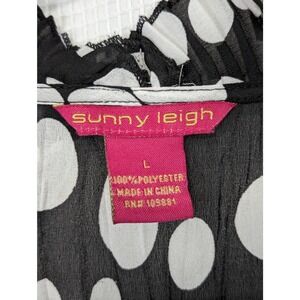 From Sunny Leigh, this terrifically feminine blouse, top features a criss cross tie front with ruffles, all in varying sizes of polka dots! A "scrunched" fabric of 100% polyester, short sleeves, Size Large, New! ***NEW NO TAGS, and Guaranteed Perfect by @nocd!***