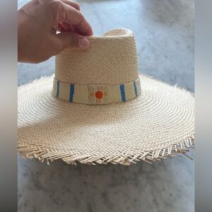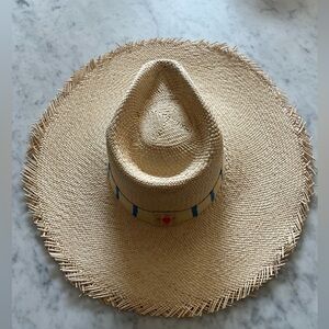 NWOT SUNSHINE TIENDA SUSANA WIDE BRIMMED PALM FRINGE HAT XS/S