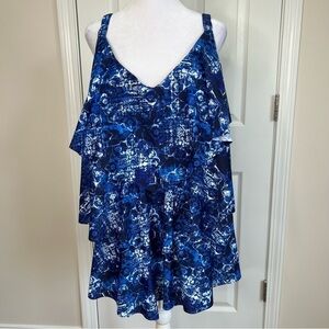 NWOT. SWIMSUITS FOR ALL LONGER-LENGTH TIERED-RUFFLE TANKINI TOP