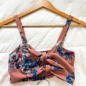 NWOT Sage The Label Floral Two-Piece Set XS Tie Front Crop Top Tiered Mini Skirt